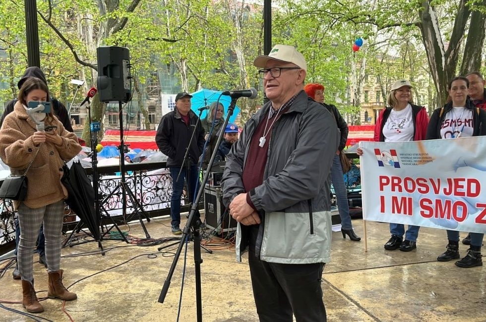 Hoćemo li mi ostaviti svoje zdravlje u zdravstvenom sustavu samo zato jer nemamo odgovarajuće uvjete rada? Ne želimo više tako raditi. Tražimo od predsjednika Vlade RH da se ponaša prema svima jednako, da ne traži elitu među nama u zdravstvenom sustavu. Tražimo da svima, ne samo pojedinima poveća plaće. Konačno moramo progovoriti o tome da se ne može živjeti s minimalnom plaćom i o tome da 20 posto radnika u zdravstvenom sustavu radi za plaću manju od minimalne pa se moraju raditi korekcije satnice, kazao je Stjepan Topolnjak, predsjednik SSZSSH i dodao kako osoblje sa srednjom stručnom spremom još uvijek primaju plaće ispod prosječnih.