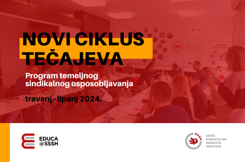 Pozivamo sve zainteresirane sindikalne povjerenike, članove sindikalnih povjereništava, sindikalne aktiviste, te radničke predstavnike da se, u dogovoru sa svojim sindikatom, prijave za sudjelovanje na sljedećim tečajevima. Održavanje svakog pojedinog tečaja ovisi o minimalno potrebnom broju prijavljenih sudionika (15), te vas molimo da vodite računa o rokovima prijave za svaki pojedini tečaj, koji su nužni iz organizacijskih razloga.