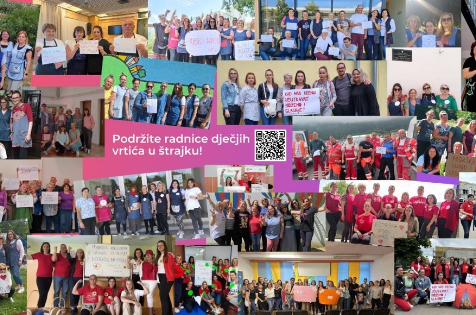 Pozivamo članove sindikata udruženih u SSSH da iskažu svoju podršku i solidarnost s članicama SOMK-a u štrajku u dječjem vrtiću Ivana Brlić Mažuranić u Biogradu na Moru pozivanjem sindikalnih povjerenika i povjerenica, aktivista i članova, osobito s područja Dalmacije, da se u što većem broju pridruže prosvjedu.