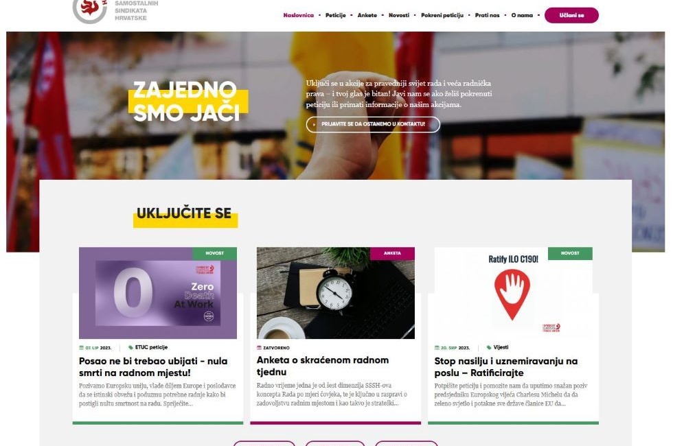 Na internetskoj stranici SSSH postavljen je novi dio, kojemu se može pristupiti preko adrese akcije.sssh.hr, a koji nam omogućuje pokretanje online peticija i prikupljanje potpisa, kao i provođenje anketa među našim članovima ili građanima.