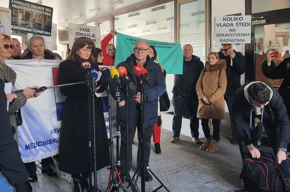 Predstavnici i članovi dva najveća sindikata u hrvatskom zdravstvu - Samostalnog sindikata zdravstva i socijalne skrbi Hrvatske (SSZSSH) i Hrvatskog strukovnog sindikata medicinskih sestara okupili su se ispred zgrade resornog ministarstva kako bi upozorili ministra Vilija Beroša na nepoštivanje radničkih prava, ignoriranje zahtjeva i jednostrano donošenje odluka. Takvim politikama najviše su pogođene medicinske sestre, tehničari i ostalo nezdravstveno osoblje jer se ne poštuju odredbe granskog kolektivnog ugovora i nije se riješio problem koeficijenata.