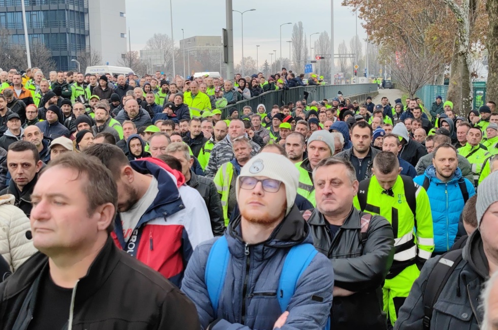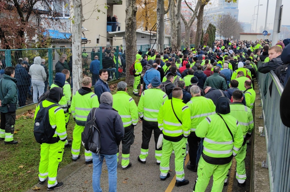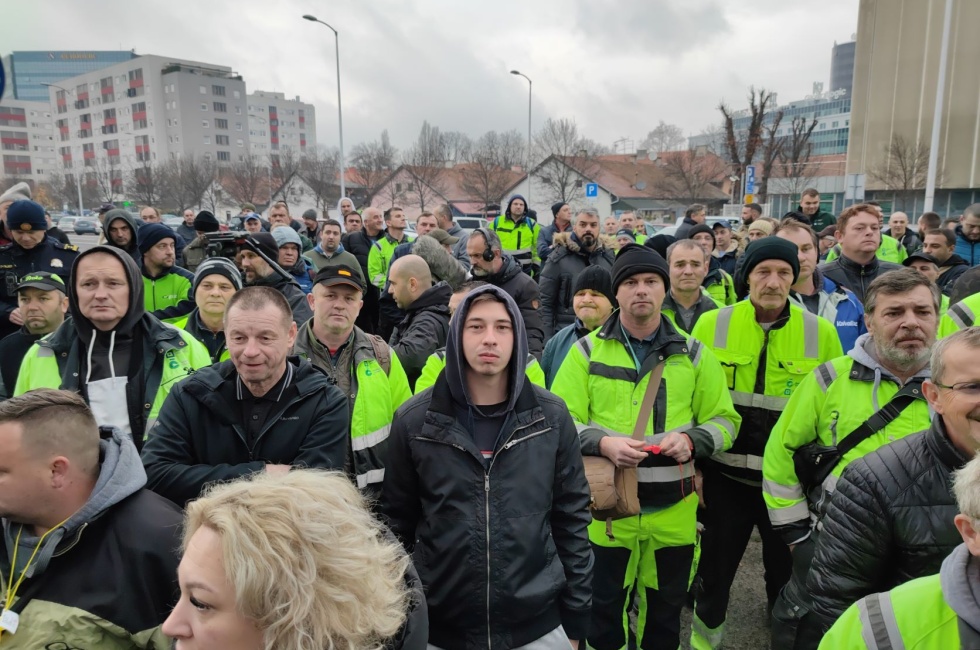 ZAGREB, 7. prosinca 2022. - Tri sindikata koja djeluju u Zagrebačkom holdingu - Samostalni sindikat radnika u komunalnim i srodnim djelatnostima Hrvatske (SSKH), Sindikat hrvatskog vozača i Novi sindikat - okupili su oko tisuću radnika zagrebačke Čistoće ispred sjedišta Podružnice u Radničkoj 82, gdje su poručili voditelju podružnice i gradonačelniku da je vrijeme da se njihovi zahtjevi za većim plaćama napokon uvaže.