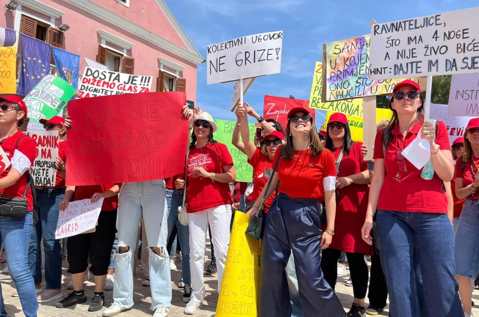 Gospodo, ja sam tu, a gdje ste vi? Pa izađite barem na balkon, pozvala je predsjednica SOMK-a Božica Žilić gradonačelnika Biograda na Moru i dodala kako je ovo borba za sve radnice i radnike u dječjim vrtićima u Hrvatskoj jer se ovakve situacije ne bi nikada ponovile. Šutnja nije izbor, šutnjom poručujemo da nenormalne stvari postaju normalne, da prihvaćamo nešto što nije dopušteno zakonom. Na to ne pristajemo. Gospodine Knez, je li vaša uloga da djeca ovoga grada gledaju svoje odgojiteljice uplakane i uznemirene, da to izaziva u njima strah i nelagodu? Zar je to vizija predškolskog odgoja ovoga grada? Sramota!