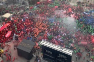 Članovi sindikata iz 30 zemalja doputovali su u Belgiju kako bi sudjelovali u prosvjedu Zajedno protiv štednje u organizaciji Europske konfederacije sindikata (ETUC), gdje je su upozorili političare da će ih ponovno uvođenje mjera štednje skupo stajati na skorim europskim izborima.