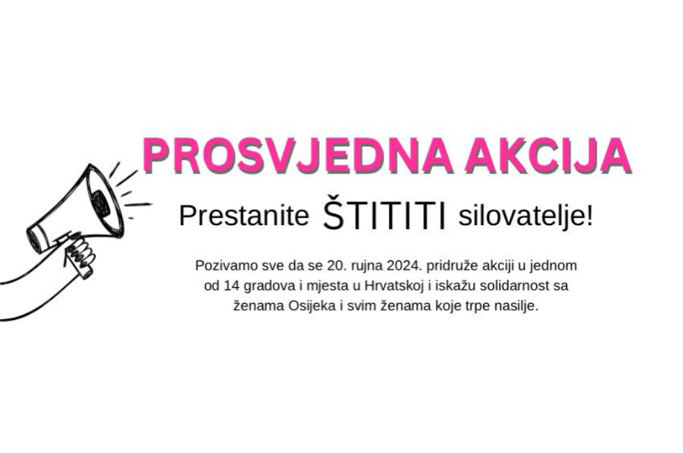 Pozivamo sve da se 20. rujna pridruže simboličnoj javnoj akciji „Prestanite štititi silovatelje“ u jednom od 15 gradova i mjesta u Hrvatskoj i iskažu solidarnost sa ženama Osijeka i svim ženama koje trpe nasilje.