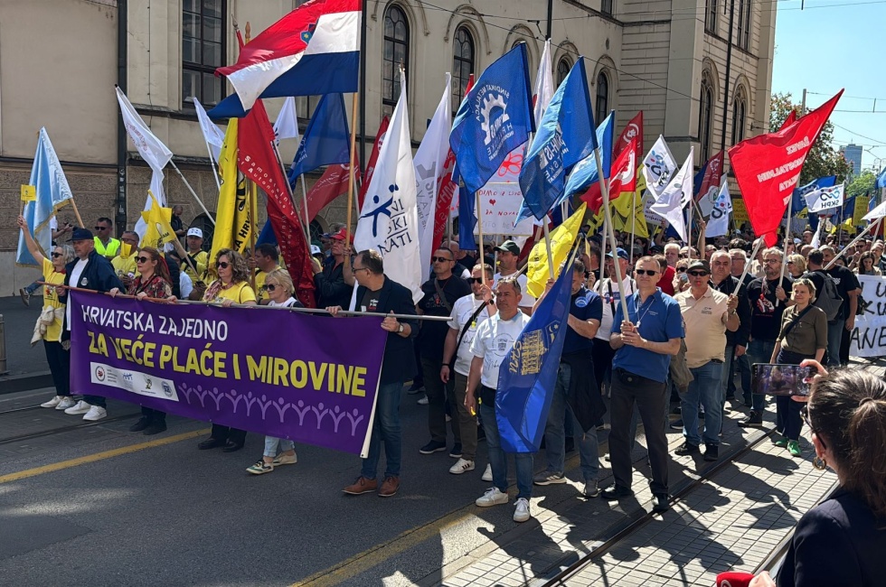 Od 10:00 sati započelo je okupljanje članova sindikata kod zagrebačkog Hrvatskog narodnog kazališta, odakle je oko 11:20 povorka krenula Frankopanskom ulicom i Ilicom prema Trgu bana Josipa Jelačića. Na čelu povorke s transparentom „Hrvatska zajedno za veće plaće i mirovine“ nosili su Mladen Novosel, predsjednik SSSH, Višnja Stanišić, predsjednica SUH-a, Sanja Šprem, predsjednica MHS-a, Tea Jarc, konfederalna tajnica Europske konfederacije sindikata (ETUC) i Dražen Jović, predsjednik NHS-a. Uz zastave i sindikalna obilježja nezadovoljstvo se isticalo zviždanjem i transparentima poput “Ako je sve poskupjelo, zašto naš rad nije?”, “Dostojanstvo nema cijenu”, "Stop porezu na siromaštvu", "Moja mirovina je crkavica", "Ako je poskupjelo zašto naš rad nije?", "Gradimo luksuz, živimo akciju i popuste!", "Nemaju svi u Dubrovniku apartmane", "Poslodavci, prekovremeni sati nisu volontiranje!", "Naš rad vrijedi - vrijedi više!", "Sestre zaslužuju više", "Ne tražimo skupocjene satove, broševe, umjetnine, tražimo poštivanje kolektivnog ugovora", "Mi nosimo cement, vi nosite prazna obećanja", "Ako je plaća tajna, onda je očito i sramota", "Ovim tempom jedina povišica koju mogu očekivati je socijalna naknada!"…