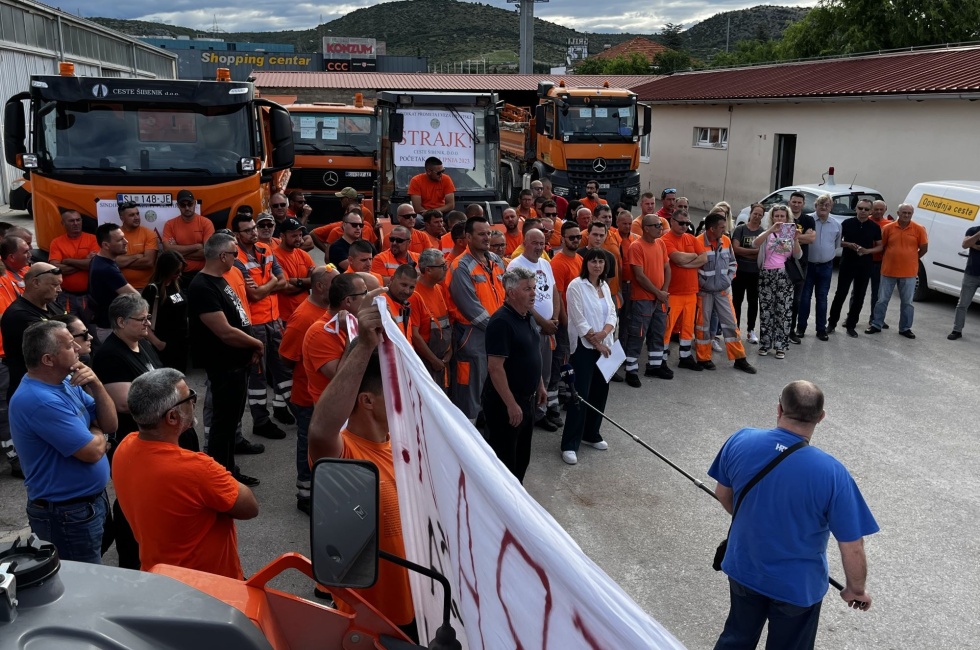 Radnici tvrtke CESTE ŠIBENIK d.o.o. započeli su štrajk u kojem traže od direktora da pristupi kolektivnim pregovorima, poveća plaće za minimalno 15 posto i uskladi odredbe Kolektivnog ugovora sa Izmjenama i dopunama Zakona o radu.