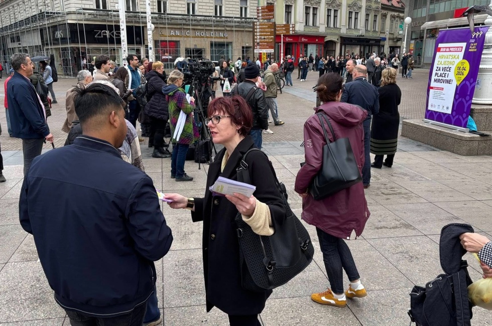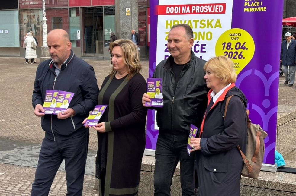 Ukupan trošak hrvatskog radnika za poslodavca je 18,4 eura dok je u EU-u to 35 eura, dobit poslodavaca od 2015. do 2024. porasla je s 2,6 na 9,9 milijardi eura odnosno 336 posto, a plaće od 72 do 76 posto. Politika i poslodavci donose odluke da hrvatski radnici tako žive i na prosvjedu želimo poručiti da život u Hrvatskoj nisu tablice, rejtinzi, nego najveća inflacija u EU. Radnik mora imati izbor, a ne da živi loše, poručio je Jović.